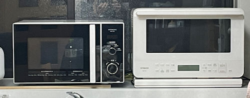 我が家の15年目になる日立製の電子オーブンレンジ(MRO-GF6 22L)を同じく日立製のMRO-F6C(27L)(写真右側)に買い換えました。2024年製の型落ち品で、Yahoo!Shoppingでブラックフライデーポイントなどを考慮して実質25,000円ほどで購入できました。ターンテーブル式の単機能電子レンジの日立製HMR-TR221-Z6(20L)と2台利用となっております。