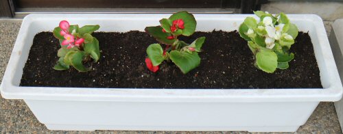昨年と同様にべゴニアの苗を買ってきて2個のプランターに植え込みました。ベゴニアは、あまり増えすぎず、長持ちするのでプランターで玄関脇に置いておくのに最適です。