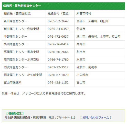 富山県の相談窓口です