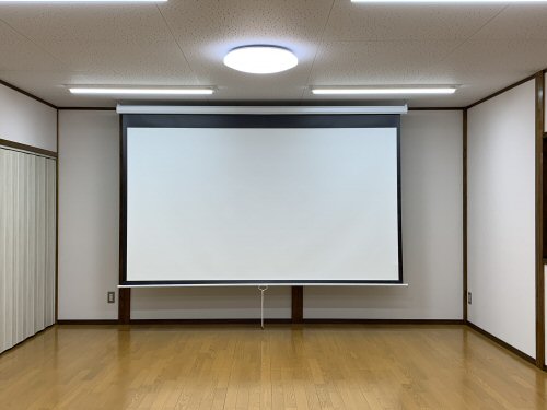 納屋の内装工事も最終段階になりまして、120インチ(16:9)のスクリーンを取り付けました。まだプロジェクターがありませんので投影は試しておりませんが、大きさは結構でかいです。映画が楽しみです。