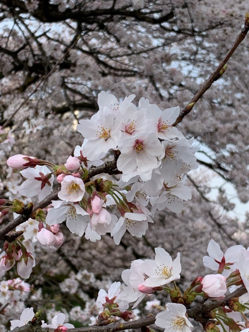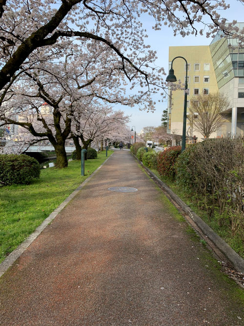 本日満開予定の松川べりの桜を観て参りました。人混みを避けて、朝7時過ぎから歩きまして2年ぶりの花見になりました。今朝は結構寒く、スマホを持つ手がかじかんでポケGoも大変でした。(^^;