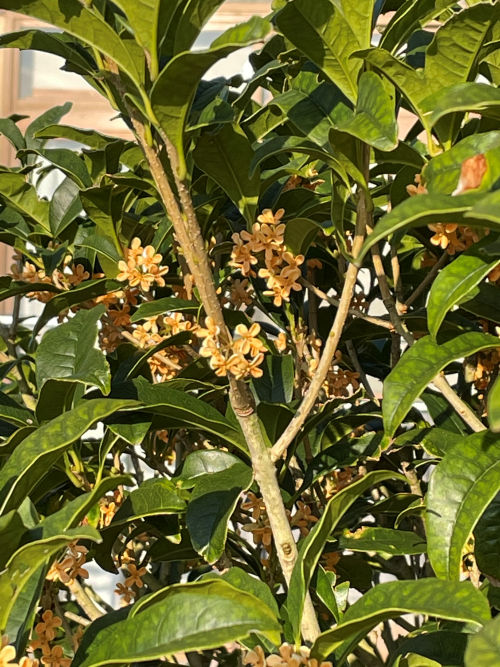 先日から庭先のキンモクセイが開花してほんのりといい香りがしております。10年ほど前に植え込みましたキンモクセイですが、やっと昨年ぐらいから香りがでるようになりました。