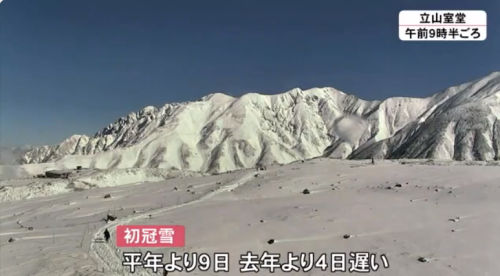 先日から急に寒くなっておりまして、富山地方気象台から今朝、立山の初冠雪を観測したと発表されました。平年より9日遅い観測だそうです。我が家も週末には、電気カーペットとファンヒーターを出す予定で、去年よりも遅いと思われます。この冬は大雪にならなければいいのですが、どうでしょうか。