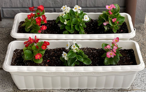 毎年恒例の「ベゴニア」の花をプランターに植え込みました。10月末ぐらいまで長く持って、約100円/本と値段も安いです。我が家では唯一の花で玄関の両脇に置いております。